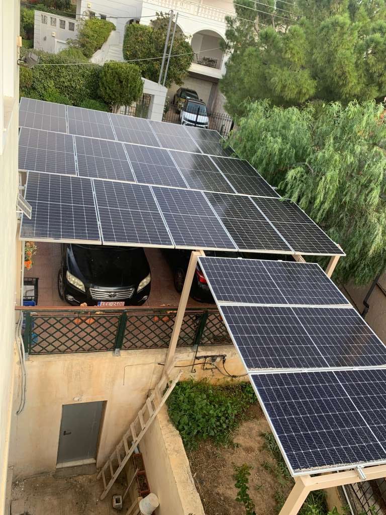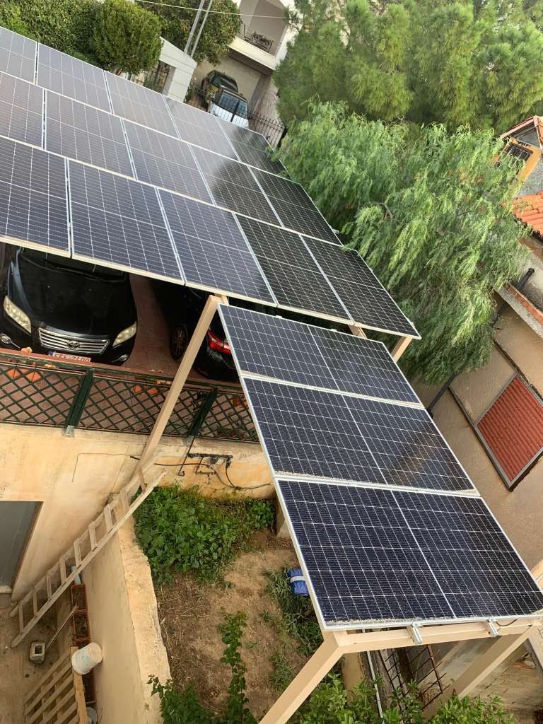 We have completed an advanced 10 kWp photovoltaic project in Lagonisi, Attica, installed on a custom-built metal canopy. The system includes 18 Suntech 550Wp panels, an Azzurro HYD10KTL inverter, and 2 HV 5K Azzurro batteries, offering a combination of energy production and storage for energy autonomy and maximum efficiency.